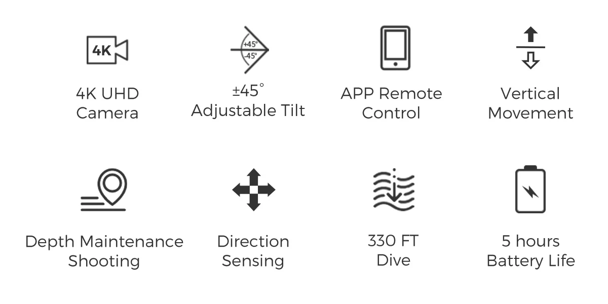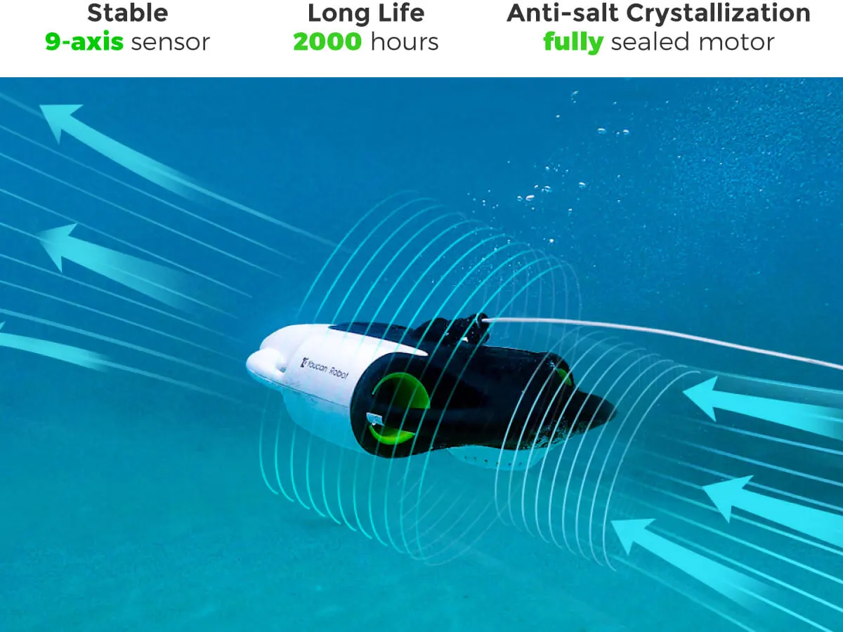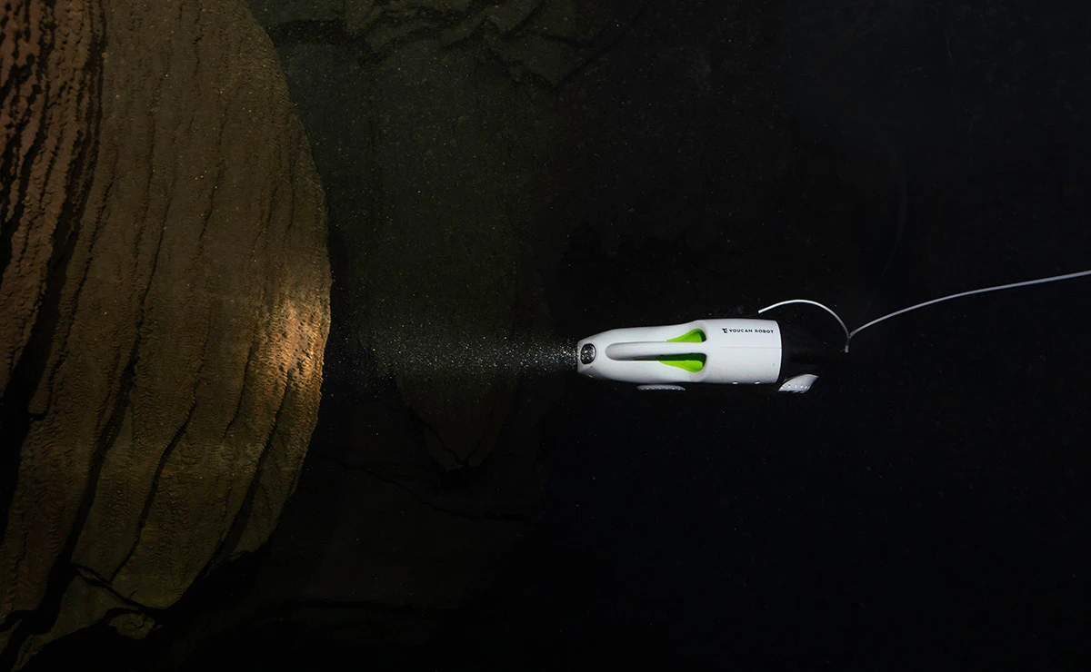 Youcan’s underwater drone is one of the most stable across any type of water. It uses four motors to manage directionality – two for horizontal movement, two for vertical – using a symmetrical structure that keeps the drone moving steadily – at a speed of as much as 1.5 meters per second.
