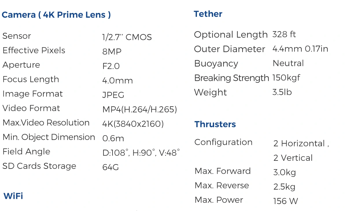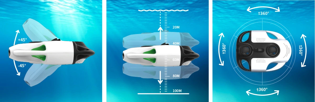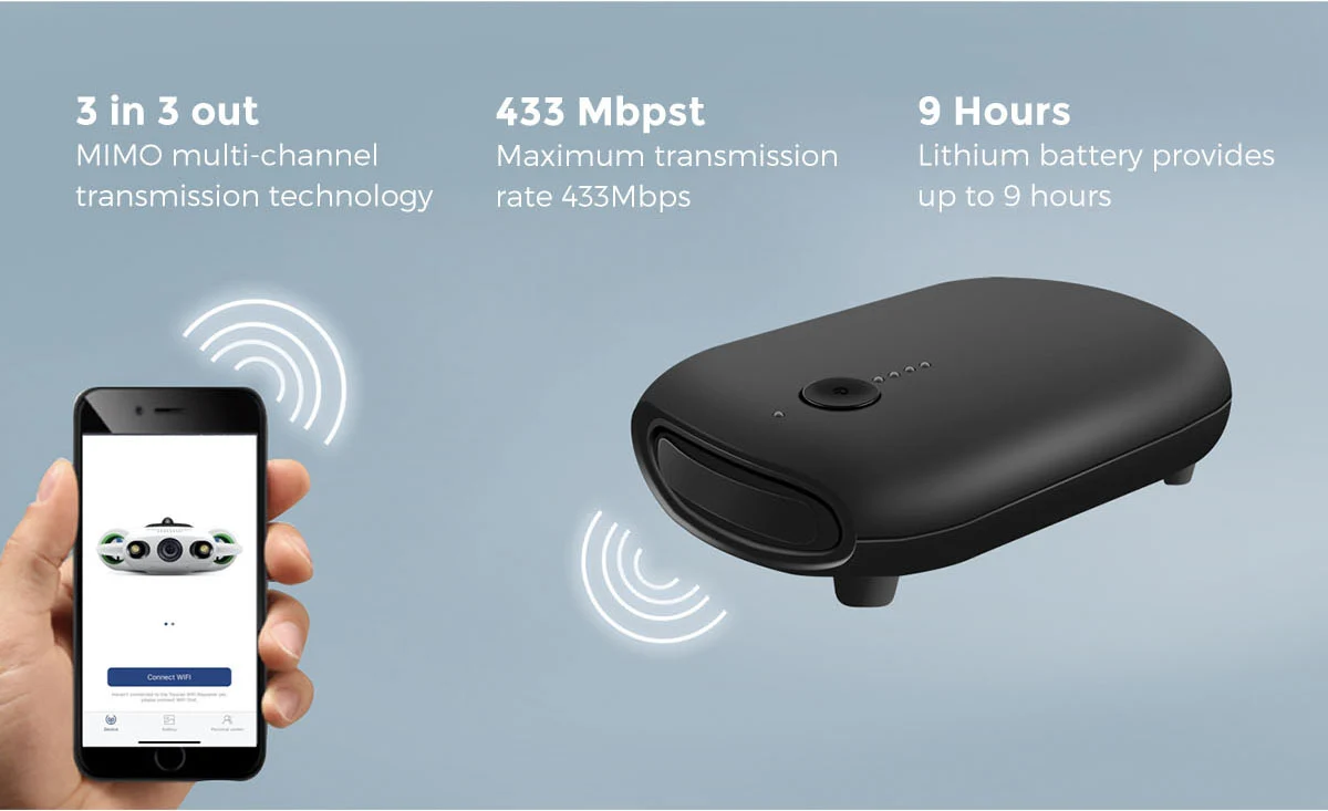 Using a more advanced WiFi signal that integrates MIMO technology and multi-channel transmission, our underwater drones are capable of a very strong, uninterrupted signal as far as 100 meters away with very low latency.