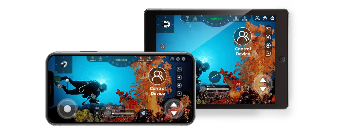The Youcan Dive App gives you complete control over your underwater drone and view live images and video. It also supports multiple devices, so you can share your discoveries with others.